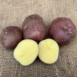 Deze telg van de Solanum phureja (een ander soort dan de normale aardappel) is allereerst redelijk goed resistent tegen Phytophthora. Het is een vrij goed te bewaren aardappel: vast tot fijn kruimig, knapperig, fris, kortom uniek van smaak! Probeer ze gelijkmatig te telen, nooit laten uitdrogen, zware grond wat verbeteren. Deze lekkernij verdient wat extra aandacht... De ronde knollen zijn rozerood van schil en lichtgeel knolvlees met soms een rode ring. Koks eren dit type met de aanduiding “oeraardappel”, ze bevat een intensieve “wilde” aardappelsmaak en heeft een vrij hoog caroteengehalte! Ze geven een grote oogst. ZaaimethodeZaaien: net als het familielid tomaten, kunnen ook aardappels gezaaid worden! Vanaf februari-april op een warm plekje. Jonge plantjes verspenen in potjes en na half mei uitplanten op 70x40 cm. Leveringsmaandenhet gehele jaar
