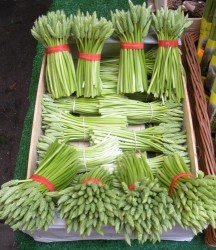 Na enkele jaren geduldige teelt kunnen we sinds 2012 gaan oogsten van deze onbekende en exclusieve groentesoort. De bloemstengels worden rauw in de knop geoogst en klaargemaakt als een heerlijke asperge met een stevige, “wilde” smaak. Maak een productieveldje op een zonnige tot halfbeschaduwde plek, humus- en kalkrijk en oogst ze jarenlang: de planten zijn zeer winterhard. Ze hebben op zijn minst graag wat onderbegroeiing, gras is ook al goed. Vroeger groeide deze telg van de vogelmelkfamilie uitbundig rond de stad Bath in Engeland, maar daar heeft men te gretig geoogst... In de berggebieden van Frankrijk en Spanje (Pyreneeën) tref je ze nog aan en worden aldaar door de bevolking geoogst en op de markt gebracht. De Fransman noemt deze verrukkelijke groente ook wel Asperge des Bois omdat ze in lichte bossen het meest met rust gelaten worden en dus daar nog voorkomen. Als je eens wat bloemen laat doorgroeien, geniet dan van bloemstengel van 40-100 cm hoog, aan het eind gesierd met bloemtrossen van 30-50 cm groot. De stervormige bloemetjes (mei-juli) zijn crèmewit en blijven na de bloei geopend om geleidelijk af te rijpen in fraaie doosvruchten.