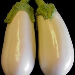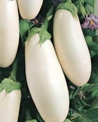 Een prachtige ivoorwitte soort in dezelfde langwerpige vorm als de bekende donkerviolette aubergine. Middelgroot (15cm lang en 7cm breed). Vruchtvlees mild van smaak en sneeuwwit. De teelt van dit ras lukt zeer goed in de vollegrond, de opbrengst is enorm.