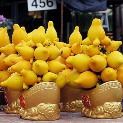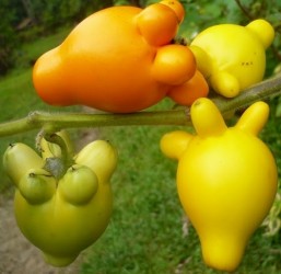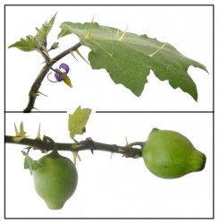 Een boeiende, onbekende telg van de auberginefamilie. De stekelige, sierlijke planten geven na de sierlijke blauwe bloei de grappige licht- tot donkergele vruchten in de vorm van een koeienuier! De takken met vruchten zijn zeer populair bij bloemisten, in Azië maakt men complete kunstwerken met deze vruchten! In de homeopathie wordt deze (verder giftige) plant gebruikt, ook wordt geëxperimenteerd met extracten ter bestrijding van insecten. Houdt u het voorlopig maar bij de toepassing als “rare” siervrucht....!