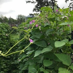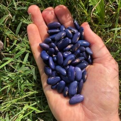 Een zeer vruchtbare, klimmende boon, waarvan je de peulen vers kan doppen (als een flageoletboon) of geheel droog kan oogsten. De verse boontjes zijn helderblauw, verwacht 6 boontjes per peul en de droge boontjes worden bijna zwart en zijn dan uiteraard lang te bewaren. Deze prachtige, roze bloeiende boon is door spontane kruisingen ontstaan op het seedsaver veld van Lisa Bloodnick in Apalachin (Bloodnick Farm). Onze Nederlandse kweker vermeerderde het ras verder voor ons... Na enig experimenteren vond Lisa in 2018 dat het ras zuiver genoeg was. Het was een erg nat jaar en ‘Sacre Bleu’ bleek als enige nauwelijks last te hebben van schimmel, wat een prettige eigenschap is voor een boon, die geheel rijp moet worden geoogst! ZaaimethodeZaaien: mei-juni aan de voet van stokken of andere klimmogelijkheid (2 m). Voorzaaien in potten mag ook. 5 zaden per stok. Bonen houden van warmte, zaai niet te vroeg en niet met veel regen op komst. Tip voor het opslaan van droge bonen: om uitkomen van eventuele eitjes van de bonenvlieg te voorkomen plaatst u de goed gedroogde bonen 24 uur in de vriezer. Leveringsmaandenhet gehele jaar