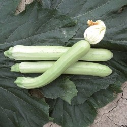 Deze crèmewitte courgette heeft de voor ons bekende vorm: overal dezelfde dikte. Oogsten op een lengte van 20-30 cm is optimaal. De niet-rankende planten geven een grote oogst! De smaak is zacht en prettig.