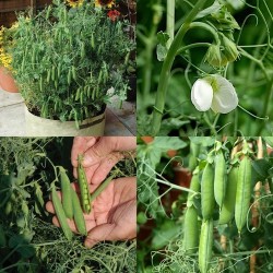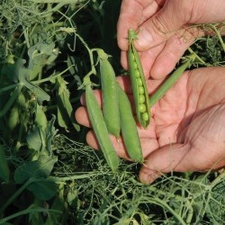 DE TOPPER VOOR IN EEN GROTE POT! Een modern ras van Nederlandse bodem (Cebeco) dat qua opbrengst, teeltgemak en ziekteresistentie zeer hoge ogen gooit! Bij dit zogenaamde semi-bladloze ras zijn een deel van de bladeren omgevormd tot ranken. Doordat ze een opener gewas geven treden er minder ziekten op. Tip: zaai 2 rijen op 25 cm uit elkaar zodat ze steun aan elkaar geven (eventueel met een enkele stok hier en daar) en vervolgens weer voldoende afstand (60 cm) tussen de dubbelrijen. De hoogte is 60-75 cm, de opbrengst van de zoete, ronde, middenvroeg rijpe erwtjes is groot! Tip: zaai dit peulgewas om en om met huttentut (