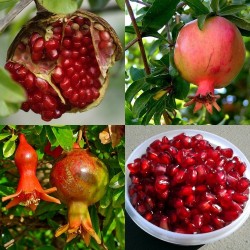 De bakermat van deze interessante kamer- en kuipplant ligt langs de Middellandse- Zee. Ginds een kleine boom, hier uitgegroeid tot een flinke volle plant, die ongesnoeid wel 1,5-2m. hoog kan worden. De massa's glimmend groene blaadjes en de feloranje trompetvormige bloemetjes maken de plant tot een opvallende aanrader. Door insectenbestuiving groeien de bloemetjes uit tot heuse granaatappels.