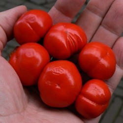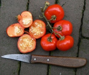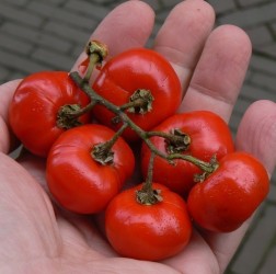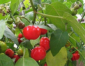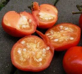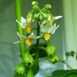 Een familielid van de tomaat met een bizarre naam! Vroeger, toen er nog kanibalen op de Fiji-eilanden woonden, werd het verhaal door de botanicus B.C. Seeman opgetekend (in 1864) dat mensenvlees samen met 2 kruiden toch echt met de saus van deze vrucht moest worden bereid om appetijtelijk te zijn… We zijn niet van plan het uit te testen. Ondertussen is het weer een interessante vruchtgroente: gezonde blad-groei met volop vruchten van 4cm ∅. De smaak is iets bitterder dan onze gewone tomaat, ideaal voor roerbakken of koken dus. Het blad is overigens ook eetbaar. Hoogte van deze bossige plant: 1-1,5m.
