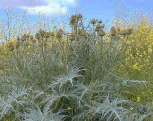 Kardoen is een distelachtig familielid van de artisjok. Je eet de vlezige bladsteel, die een paar weken voor de oogst omwikkeld wordt met zwart folie om ze te bleken. Er zijn ook andere bleekmethoden. De bloem is een sieraad voor tuin en vaas en wordt daarvoor dus vaak geteeld. We bespeuren echter steeds meer serieuze eters en we verzamelden diverse rassen ter vergelijking. De bloei is per ras ook iets afwijkend van elkaar. Fijn ingesneden blad met dikke bladnerf. Bloeit zeer sierlijk!