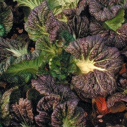 Middelgrote, sierlijke amsoi: purperrood met groen. De bladeren en nerven zijn vrij dik en het blad is sierlijk (succulent) gebobbeld. Jong blad is heerlijk pittig door de sla!