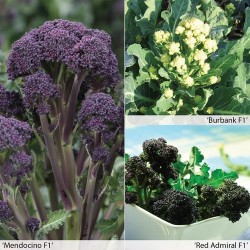 ASPERGE-BROCCOLI EEN HALFJAAR LANG! De oude broccoli met malse, lange scheuten is weer helemaal terug op het menu! De Engelsen hebben dit soort nooit verlaten en hebben de laatste decennia zeer goede, professionele rassen ontwikkeld met een hoge oogstzekerheid. Deze mix bevat 3 toprassen: ‘Mendocino’ F1, ‘Burbank’ F1 en ‘Red Admiral’ F1. Ze verdelen de oogstperiode over een lange periode: van november-mei en voorzien je zelfs in de winter van een mals maaltje. Per plant kan je wel 100 scheutjes oogsten!