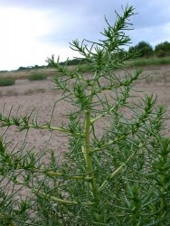 Knapperig dikke, bijna succulente, grasachtige blaadjes vormen deze smakelijke groente, die in Italië populair is onder de naam Agretti of Barba di Frate (=monniksbaard). Als salade (of toevoeging in gemengde salade) valt de iets zoute touch op als echte smaakmaker! Ook gekookt een lekkernij: water koken, monniksbaard er in, kort koken tot het blad net verkleurt (en dus nog voldoende bite heeft). We horen voor deze kustgroente ook de naam "landwier", maar onterecht. Loogkruid (Salsola kali) zit erook dicht bij, maar is bitterder. Vroeger werd uit de as van deze plant soda gemaakt. De plant wordt ook toegepast om de bijzondere eigenschap van zout uit de grond op te kunnen nemen! Een beetje extra zout door het sproeiwater geeft dus meer smaak aan de plant! De teelt kan zowel in zoet- als zoutwater gebieden plaatsvinden. De kieming is traag, zie de uitgebreide zaaiaanwijzing. (Zie ook Japanse Zeekraal, nr.