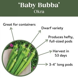 Een ideale Okra voor de teelt in potten, de planten worden ongeveer 75-100 cm hoog! De malse, smakelijke vruchten worden 7-9 cm lang, je kan een grote en vroege oogst verwachten. Bij milde, minder warme zomers is het helpend om de plant in de kas te kweken of de plant met koudere dagen even binnen zetten. Okra is een koukleum en kan flinke hitte goed aan.