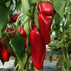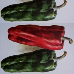 Deze langwerpige, soms puntige, soms stomp eindigende paprika is al minstens sinds 1859 in de Europese zaadhandel en ze waren voor de komst van moderne hybriden de grootste paprika’s op de markt! Opvallend is de grote oogst en de gemakkelijke groei van de groene naar rood rijpende vruchten. Groen is de smaak van de vrucht voldoende zoet en knapperig met een tintje anijs. De rijpe, rode vruchten zijn zoet en boordevol smaak. Met flinke groeikracht groeien de planten uit tot 1-1,5 m hoogte. Elke vrucht is 3-hokkig en hier en daar onregelmatig ingedeukt, wat tot grappige vormen leidt, afmeting 15-20 cm lang en 6-8 cm breed.