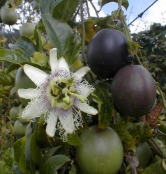 Passievruchten hebben een unieke, prettige smaak: zoet en iets bitter. De meest succesvolle en lekkere vruchten groeien aan deze soort (Passiflora edulis). Kweek ze in een kas, die je net vorstvrij kan houden of in een grote pot, die je vorstvrij kan zetten. Ze kunnen niet tegen nachtvorst, maar staan ‘s winters wel graag koel en licht. De fraaie, wit met paarse bloemen zijn zelfbestuivend, dus de vruchtzetting lukt vaak goed!