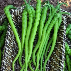 Een hete Turkse peper met lange, zeer dunne vruchten. Bij uitstek geschikt voor de teelt in potten op het terras, balkon of vensterbank. De plant is zeer decoratief door de mooie vruchten en wordt niet hoger dan 50 cm. De vruchten kunnen wel 15-20 cm lang worden, maar zijn niet breder dan 1 cm. In juli-augustus kunnen er zomaar 50 pepers aan een plant hangen. Prima toepasbaar in hete gerechten. Invriezen of zelf sambal maken is uiteraard ook een optie. De plant is binnen goed door de winter te krijgen (koele plek voor een zonnig raam, spaarzaam water geven, eventueel snoeien en goed controleren op vooral spint). De beloning is een extra vroege oogst in het jaar erop. In de Turkse traditie worden de pepers GROEN geoogst, ze rijpen rood na en zijn dan wat zoeter.