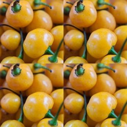 De planten dragen per plant honderden ronde, gele vruchtjes. Ze staan rechtop aan de plant en zijn zeer populair in Bolivia en Peru. In bijna elk eethuisje zal je een portie “Criolla” aangeboden krijgen, een mix van gesneden rode uien, citroensap, zout, water en geplette Charapita’s: zeer smakelijk! Mensen, die dit pepertje niet kennen, denken vaak, dat die gele balletjes maïs of bonen zijn, let op als je in Zuid-Amerika bent... Ze zijn ongeveer even (loei)heet als de Tepinpeper: 100.000-250.000 scovilles.