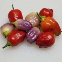 Echt een prachtig uitziende soort uit Peru, ze zien eruit als kleine, kleurige juwelen die uit het felgroene blad van de plant ontspruiten. Ze smaken net zo geweldig als ze eruit zien, en worden gebruikt vanwege hun lichtzoete smaak en milde scherpte in zowel verse salades als in sauzen, salsa en andere gerechten. De rijping gaat van lichtpaars, via lichtoranje naar dieprood. De planten zijn zeer bossig, 80 cm hoog en uiterst productief.