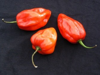 Mooie geblokte, groen naar rood rijpende peper, iets ingedeukt hier en daar. Afmeting 5 cm lang en 3 cm breed. Het aroma is fruitig, iets gerookt. Een zeer hete peper voor de meer ervaren peperliefhebber!