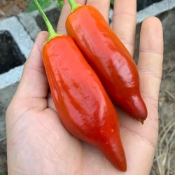 Een zeer toegankelijke en vrij grote, rode peper, waar je niet snel je mond aan brand...! Het ras is in Duitsland ontwikkeld en heeft mooie aroma’s en enige zoete tonen. De vruchten kunnen gemakkelijk 10 cm lang worden en zijn vrij breed en groeien overvloedig aan tamelijk grote planten van 120cm - 150cm. Geef de planten wat steun om deze rijkdom te kunnen dragen!