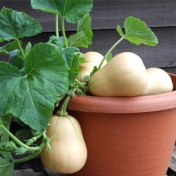 Dit butternut-pompoentje (ook wel flessenhals-pompoen genoemd) is heel vroeg oogstbaar en neemt een kleine plek in beslag. De plant maakt geen ranken en is compact net als de courgette. Ideaal voor verhoogde plantenbedden of potten dus! Butternut-pompoentjes zijn gemakkelijk in gebruik omdat de zaden alleen in het buikje zitten, daarnaast zijn ze ook nog zeer smakelijk en zacht van textuur.