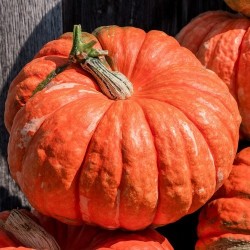 We zijn erg blij dat we het mooie sortiment van Outstanding Seed Company kunnen verkopen. Dit Amerikaanse bedrijf uit Beaver Falls (Pennsylvania) is gespecialiseerd in het kweken en verbeteren (door traditionele veredeling) van pompoenen. Ze letten daarbij op verbetering van kleur, vorm, smaak, ziekteresistentie, oogsttijdstip, oogstgrootte en bewaarbaarheid. Fijn om rechtstreeks bij de bron te kunnen kopen! Soms moeten “oudjes” even een vernieuwing ondergaan... We zijn er trots op, dat we deze sterke versie van de Rode Centenaar (Rouge Vif d’Etampes) kunnen introduceren! De planten geven een grote oogst van platronde, oranjerode vruchten (35-40 cm in doorsnee en 20 cm hoog), tijdens de groei is de kans op meeldauw zeer klein, waardoor de oogst lang kan doorgaan. De planten ranken ijverig, de vruchten kunnen soms iets afwijkende kleuren en vorm vertonen, maar allen zijn zeer smakelijk voor een flink groot gerecht. De vruchten zijn gemakkelijk enkele maanden te bewaren.