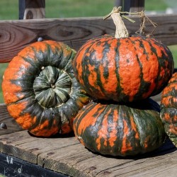 We zijn erg blij dat we het mooie sortiment van Outstanding Seed Company kunnen verkopen. Dit Amerikaanse bedrijf uit Beaver Falls (Pennsylvania) is gespecialiseerd in het kweken en verbeteren (door traditionele veredeling) van pompoenen. Ze letten daarbij op verbetering van kleur, vorm, smaak, ziekteresistentie, oogsttijdstip, oogstgrootte en bewaarbaarheid. Fijn om rechtstreeks bij de bron te kunnen kopen! Opvallend, lekker en ziekteresistent! Zo kan je deze prachtige, pompoen typeren... De planten zijn sterk bestand tegen meeldauw, je kan dus een goede oogst verwachten van deze dieprode vruchten met zwarte marmering (of zwart met rode marmering). De schil is uniek ruw, met bobbels en herbergt smakelijk vruchtvlees.
