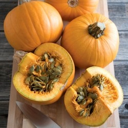 ZaaimethodeZaaien: vanaf half maart (binnen) of vanaf half mei buiten op de plaats van bestemming. Plantafstand 100x150 cm. Pompoenen kunnen probleemloos buiten worden geteeld. De groeitoppen moeten regelmatig worden gesnoeid en zijn eetbaar! Oogst tijdens droog weer geeft de beste bewaarbaarheid. Leveringsmaandenhet gehele jaar