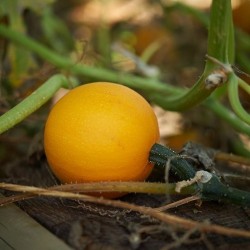 Pompoenen kunnen probleemloos buiten worden geteeld. De groeitoppen kunnen regelmatig worden gesnoeid en zijn eetbaar! Oogsten tijdens droog weer geeft de beste bewaarbaarheid. Alle pompoenen zijn eetbaar! Bij sommige soorten vermelden we de synoniemen, dat zijn de namen waaronder het soort ook bekend is. Bij andere soorten vermelden we zeer gelijkende soorten, heeft u duidelijk voorkeur voor een van die bij elkaar vermelde soorten, geef dat dan duidelijk aan. Een mooi, kleine oranjegeel, Frans pompoentje, dat je kan vergelijken met zijn bekende Zuid-Afrikaanse neef, het Rondini-type (215220). Dit minipompoentje heeft veel mogelijkheden: lang te bewaren, dus ideaal voor de sier, maar ook fris van smaak dus goed eetbaar en ideaal om in zijn geheel te koken! De bolronde vruchten zijn ongeveer 10 cm doorsnee. Als je ze onrijp oogst zou je ze tot de ronde, klimmende courgettes kunnen rekenen. Dit probleemloze pompoentje handhaaft zich zelfs op de armste grond, hoewel rijke grond een grotere plant met veel meer oogst oplevert.