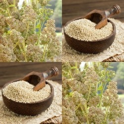 Quinoa is een eenjarige plamt en behoort tot het zelfde geslacht als Melde, Brave Hendrik en Aardbeispinazie. Het blad is als spinazie te eten en de bloei-aren geven eiwit- en vitaminerijke zaden, die als rijst smaken. De plant wordt 1m hoog en groeit in Peru en Bolivia zelfs tot op 4500 m hoogte!