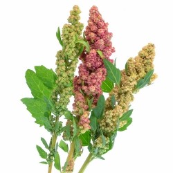 In Zuid- Amerika een belangrijk voedselproduct, boeiend om hier eens uit te proberen! Deze eenjarige soort behoort tot het zelfde geslacht als brave hendrik en aardbeispinazie. Het blad is als spinazie te eten en de bloei-aren geven eiwit- en vitaminerijke zaden, die als rijst smaken. De plant wordt 1 m hoog en groeit in Peru en Bolivia tot op 4500 m hoogte!
