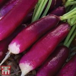 Een nieuwe kleur in het halflange ‘French Breakfast’- type: diep purperroze met een wit uiteinde. De smaak is zoals het hoort: lekker knapperig met een tikje hitte.