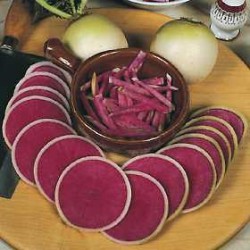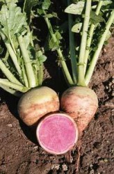 roze binnenkant, de doorgesneden plakjes zijn dus roze met een wit randje: aantrekkelijk voor salades en prima van smaak. Zaaien vanaf juni geeft overigens de beste resultaten. (Dosering: 15 g p/100 m2 -bij voorzaaien in perspot-, 100 g p/100 m2 bij direct zaaien)