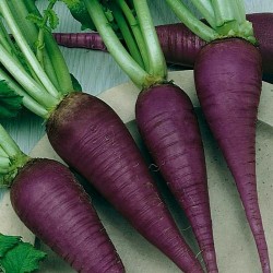 Een zeer oude variëteit met dieppaarse, halflange wortels, die wit van binnen zijn. Lekker scherp van smaak, geschikt voor late teelt: wortels zijn ingekuild lang houdbaar.