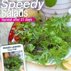 Allemaal saladesoorten, die decoratief ingesneden bladeren hebben. De smaak varieert van mild, tot notig en pittig. Een lieveling van de graag garnerende kok! De mix bevat meestal: mizuna (Japanse raapsteeltjes), gefranjerd mosterdblad, tuinkers, bladkool en rucola. De soorten zijn goed koudebestendig, maar kunnen ook ‘s winters binnen worden gezaaid. Klaar voor de oogst vanaf 3 weken.