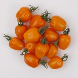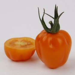 De oranje vruchtjes (20 gram) groeien aan mooie, lange trossen en zijn tamelijk gelijk rijp. Het is een professioneel ras, dat goed te transporteren is en de vruchtjes barsten niet snel. De frisse, zoete smaak is goed in balans, hoe rijper geplukt, hoe lekkerder uiteraard. Opvallend is de (in verhouding) dikke vruchtwand, het is ook een heerlijk (en sierlijk!) tomaatje om met een hartig kaasje te vullen... Het tomaatje is bestand tegen veel ziekten, ook Phytophthora wordt genoemd, maar daar zijn we niet zeker van, graag horen we dit van jullie! ZaaimethodeZaaien: maart-mei binnen. Bij een hoogte van 5 cm in potjes verplanten. Zeer licht zetten en vanaf april bij mooi weer buiten afharden (bij vorst naar binnen). Buiten uitplanten vanaf half mei, in de kas vanaf half april. Dit zgn. struiktype (zelftopper) hoeft niet te worden gediefd. Plantafstand 60-80 cm. Leveringsmaandenhet gehele jaar