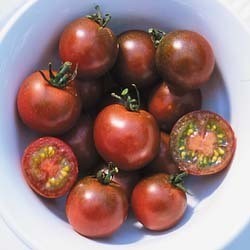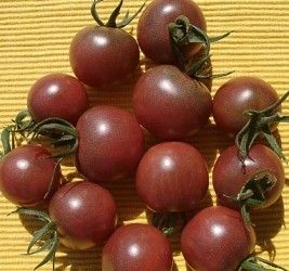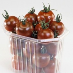 De kleinste tomaatjes in ons sortiment noemen we kerstomaatjes of pingpongtomaatjes, naargelang de grootte. Enkele variëteiten zijn langwerpig of hartvormig en krijgen navenant een iets andere benaming. Sommige zijn zelfs oorspronkelijke, wilde soorten. De meesten smaken extra zoet, een enkeling heeft een zoetzure smaak. Kerstomaten liggen het dichtst bij de oorspronkelijke soorten, wellicht daardoor zijn ze o.h.a. beter bestand tegen de gevreesde aardappelziekte. Aan 1,5-2m hoge planten groeien de flinke trossen met kleine kastanjebruine (met iets rode glans) kerstomaatjes. De smaak is wat u van een kerstomaat mag verwachten: zoet, sappig en goed. Grote productie!