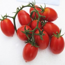 De kleinste tomaatjes in ons sortiment noemen we kerstomaatjes of pingpongtomaatjes, naargelang de grootte. Enkele variëteiten zijn langwerpig of hartvormig en krijgen navenant een iets andere benaming. Sommige zijn zelfs oorspronkelijke, wilde soorten. De meesten smaken extra zoet, een enkeling heeft een zoetzure smaak. Kerstomaten liggen het dichtst bij de oorspronkelijke soorten, wellicht daardoor zijn ze o.h.a. beter bestand tegen de gevreesde aardappelziekte. Deze vruchtbare struiktomaat (tot 80 cm hoog) geeft een enorme oogst van olijf-vormige vruchtjes, met een puntje als uiteinde. Het zoete en fruitige boeket bekoort menige kweker en Slowfood heeft dit ras ook omarmd. In Italië is dit een populair ras voor een mooie pastasaus of als gedroogd tomaatje. Kweek de plant in de vollegrond of in een grote pot. De ziekteweerstand is opmerkelijk.
