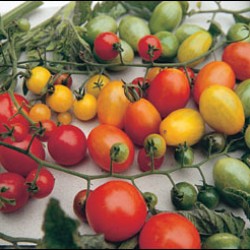 De kleinste tomaatjes in ons sortiment noemen we kerstomaatjes of pingpongtomaatjes, naargelang de grootte. Enkele variëteiten zijn langwerpig of hartvormig en krijgen navenant een iets andere benaming. Sommige zijn zelfs oorspronkelijke, wilde soorten. De meesten smaken extra zoet, een enkeling heeft een zoetzure smaak. Kerstomaten liggen het dichtst bij de oorspronkelijke soorten, wellicht daardoor zijn ze o.h.a. beter bestand tegen de gevreesde aardappelziekte. Een bont mengsel van eetbare, wilde tomaatjes, waaronder de L. pruniformis, columbianum, humboldtii, parvibaccatum, curantiacum, pimpinellefolium e.v.a. Ontdek de oorspronkelijke tomaat!