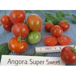 De kleinste tomaatjes in ons sortiment noemen we kerstomaatjes of pingpongtomaatjes, naargelang de grootte. Enkele variëteiten zijn langwerpig of hartvormig en krijgen navenant een iets andere benaming. Sommige zijn zelfs oorspronkelijke, wilde soorten. De meesten smaken extra zoet, een enkeling heeft een zoetzure smaak. Kerstomaten liggen het dichtst bij de oorspronkelijke soorten, wellicht daardoor zijn ze o.h.a. beter bestand tegen de gevreesde aardappelziekte. De naam zegt het al: een behaarde tomaat! Kleine haartjes hoor, bij aanraking zijn ze al weg… De plant is geheel zilverwit behaard en kan daardoor zeer goed tegen droge periodes. De oude naam ‘Velvet Red’ zegt ook al genoeg. Het resultaat? Een enorme oogst van rode, sappige, aromatische en zeer zoete vruchten van 3-5 cm doorsnee. De plant wordt ongeveer 2 m hoog en is tamelijk slank van opbouw. Joe Bratka (een tomatenverzamelaar in de VS) heeft dit ras geïntroduceerd.