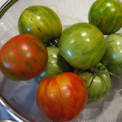 Deze groep tomaten zijn van een formaat tussen kerstomaat en vleestomaat in: middelmaat dus. Zij hebben ieder voor zich een uniek karakter. De klimmende rassen rijpen wat later dan de compacte rassen en zijn daardoor succesvoller onder regenbescherming: een afdak, kas of kweektunnel. Goed smakende vrucht: rood met helder geeloranje lengte strepen: net een tijgervel.