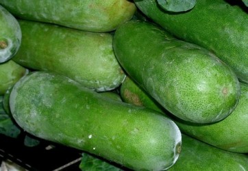 Kruipende of klimmende plant, voor teelt onder glas. Geeft donker- of lichtgroene, langwerpige vruchten die bij rijping soms over het hele oppervlakte subtiel behaard zijn. Zeer lang te bewaren. Buiten telen lukt ook, alleen blijft de vrucht kleiner en groener. Voor soepen en roerbakgerechten, kijk voor de vele recepten in de Oosterse keuken. Wikipedia geeft bijvoorbeeld als toepassingen: "In China and Taiwan, the winter melon is used to make soup in the same way as daikon radishes, and is often combined with pork or pork/beef bones. In North India and Pakistan, the vegetable is used to prepare a candy called Petha. In South Indian cuisine, it is used to make curries. Occasionally, it is used to produce a fruit drink which has a very distinctive taste. It is usually sweetened with caramelized sugar, which enhances the taste. In Southeast Asia, the drink is widely marketed as winter melon tea. In China, the winter melon is dried and sweetened and eaten at New Year festivals. In China and Taiwan, it is one of the basis of mooncake for the yearly Moon Festival."