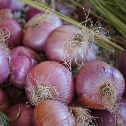Gelukkig zijn Italianen goed in het instandhouden van unieke en smakelijke groenten! Dit zeer platronde uitje uit Bergamo is daar een bewijs van... De schil is roze tot koperkleurig en inwendig zijn de uien subtiel lichtroze van kleur. Heerlijk fris en niet te heet van smaak, Italianen leggen ze graag in het zuur, je kan uiteraard alle bekende bewerkingen (inclusief rauw in de salade) op dit fraaie uitje loslaten!