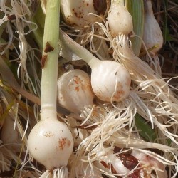 Een bizar gevormde bloem, doordat de broedbolletjes snel uitlopen. Deze selectie uit de wilde Slangenlook geeft “bloemen”, die bestaan kronkelig vergroeide stengeltjes. De stelen staan stevig op 100-120 cm hoogte, waardoor de bloemen zich prima lenen voor de vaas. Bloeitijd: juni-juli. De bollen en de bloemen zijn eetbaar, vergelijk de smaak van de bol met een milde knoflook!
