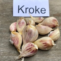 Dit tamelijk onbekende ras heeft een mooie knoflooksmaak, niet te heet. Kroke is afkomstig uit het zuiden van Rusland in de buurt van de Zwarte Zee. Reken op een gemiddeld aantal van 4-6 teentjes per bol.