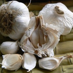 ECOLOGISCH GETEELD! Messidor is een vrij grote, witte knoflook. Zowel bol als teentjes (5-15 per bol) zijn wit. Dit is een moderne verbetering van het oude ras ‘Blanc de la Drôme’. Groeit zeer gezond met een goede opbrengst. Door de milde smaak (minder zoet dan Messidrome) heeft dit ras een brede toepassing, zowel voor bakken en koken, maar ook rauw gebruik in salades.