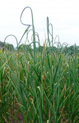 Hoe lekker ook mooi kan zijn.... (of omgekeerd). Dit smakelijke lid van de knoflookfamilie groeit met 1 of meerdere krullen in de stengel en is (daardoor) bijzonder decoratief. Spiraalknoflook heet in het engels: hardneck garlic en is o.h.a. steviger van smaak dan de zgn. softneck-rassen.
