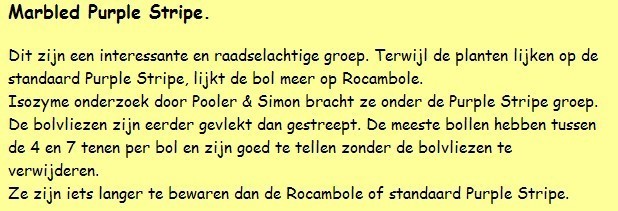 Deze knoflookbol is wit of gestreept, de 7-8 teentjes zijn altijd prachtig paars gestreept. Samarkand wordt ten onrechte ‘Persian Star’ genoemd, want het ras komt Uzbekistan. De vinder, John F Swenson stuurde me een vriendelijke mail hierover, de tekst volgt hieronder. De knoflook heeft trouwens een duidelijke, maar nauwelijks overheersende smaak. Dit maakt hem geschikt voor alle doeleinden.