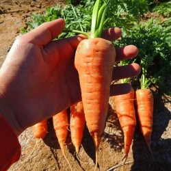 Prachtige oranjerode wortels, die zich door het gedrongen uiterlijk en de conische vorm gemakkelijk in zware grond boren. Uiteraard groeit het gewas ook zeer goed op lichtere gronden. Dit ras is van rond 1830 of 1880, de bronnen spreken elkaar tegen. De smaak wordt zelfs na bewaring (in zand) nog beter. We voeren zeer goede selecties die oranjerood van kleur zijn, dus extra gezond en erg lekker! Een van de gemakkelijkst te telen worteltjes met zeer gezonde bladgroei…