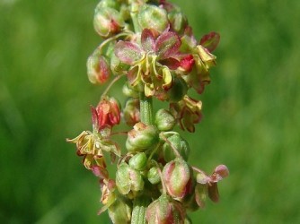 Veldzuring is de meest gebruikte en meest voorkomende zuring. De planten zijn meerjarig, 50-100 cm hoog, met pijlvormig blad en rode tot roze bloeitrossen. Dat deze gewone wilde soort lastig verkrijgbaar is, verbaast me, daarom telen we het zaad maar zelf, want deze zuring heeft goede papieren wat betreft historie en eetbaarheid. Al eeuwenlang eten de inwoners van de Lage Landen de bladeren van deze zure plant, vooral het jonge blad is heerlijk door salades of in hutspot met krenten en rozijnen (de zgn. zuringpap). Ook in "Paling in het groen" wordt zuring verwerkt. Tenslotte leveren de wortels een goede rode kleur om stof mee te verven, een goede verfplant dus.