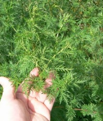Het zaad, de gele bloemetjes en het varenachtige blad hebben een heerlijke, kamferachtige geur... dit maakt de plant al heel aantrekkelijk! Een beetje van de gedroogde plant door je kussen geeft een rustgevend effect. Maar voordat we gaan oogsten, eerst de plant zelf: deze groeit wel tot 2 meter hoog en is een prachtige éénjarige afscheiding voor een veranderlijke tuin. Al eeuwenlang is in China de geneeskrachtige werking bekend: koortsverlagend en bacteriedodend. Het Artemisinine-gen, dat in deze plant wordt gevonden blijkt veelbelovend voor de medicatie tegen malaria te zijn. Ook zijn er veelbelovende onderzoeken bekend met positieve uitslagen tegen kanker. We verwijzen naar externe bronnen op internet, gebruik op eigen verantwoordelijkheid. De blaadjes kunnen overigens ook als pittige bittermaker door salades.