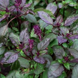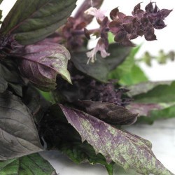 Bazielkruid houdt van warmte en hoge luchtvochtigheid. De blaadjes worden veel gebruikt bij de bereiding van soepen, sausen, visgerechten, kruiden, azijn en augurken. Deze variëteit heeft een sterke, zoete smaak met een tintje citroen, anijs en zoethout. Perfect voor salades, pesto en tomatengerechten in de Italiaanse of Thaise keuken. De compacte planten zijn sierlijk met het glanzende, groen met purperen blad vaak getand en ongeveer 5 cm lang. De eetbare bloemen kunnen (als ze jong bloeien) beter steeds geplukt worden om een goede bladgroei te bevorderen.