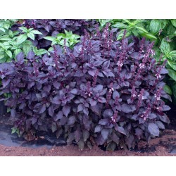 Groot, diep blauwpurper gekleurd blad met roze bloemetjes. Zeer goed aroma, een mooie combinatie met de groene ‘Genovese’. De blaadjes worden veel gebruikt bij de bereiding van soepen, sausen, visgerechten, azijn en augurken.